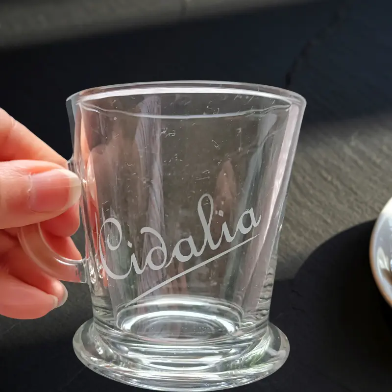 Offrez-lui un ensemble personnalisé avec plusieurs de mes produits : un verre à vin, une lampe à huile et une tasse à thé, le tout gravé à son nom ou à son surnom.