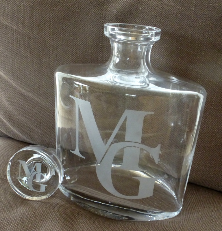 Initiales gravées sur carafe à Whisky Algan de Lux