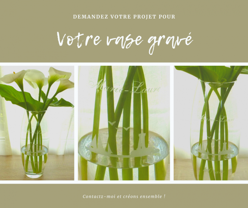 Rose sur tige dans un vase soliflore gravé par sablage de manière artisanale à Saint-Brieuc.… Lire la suite