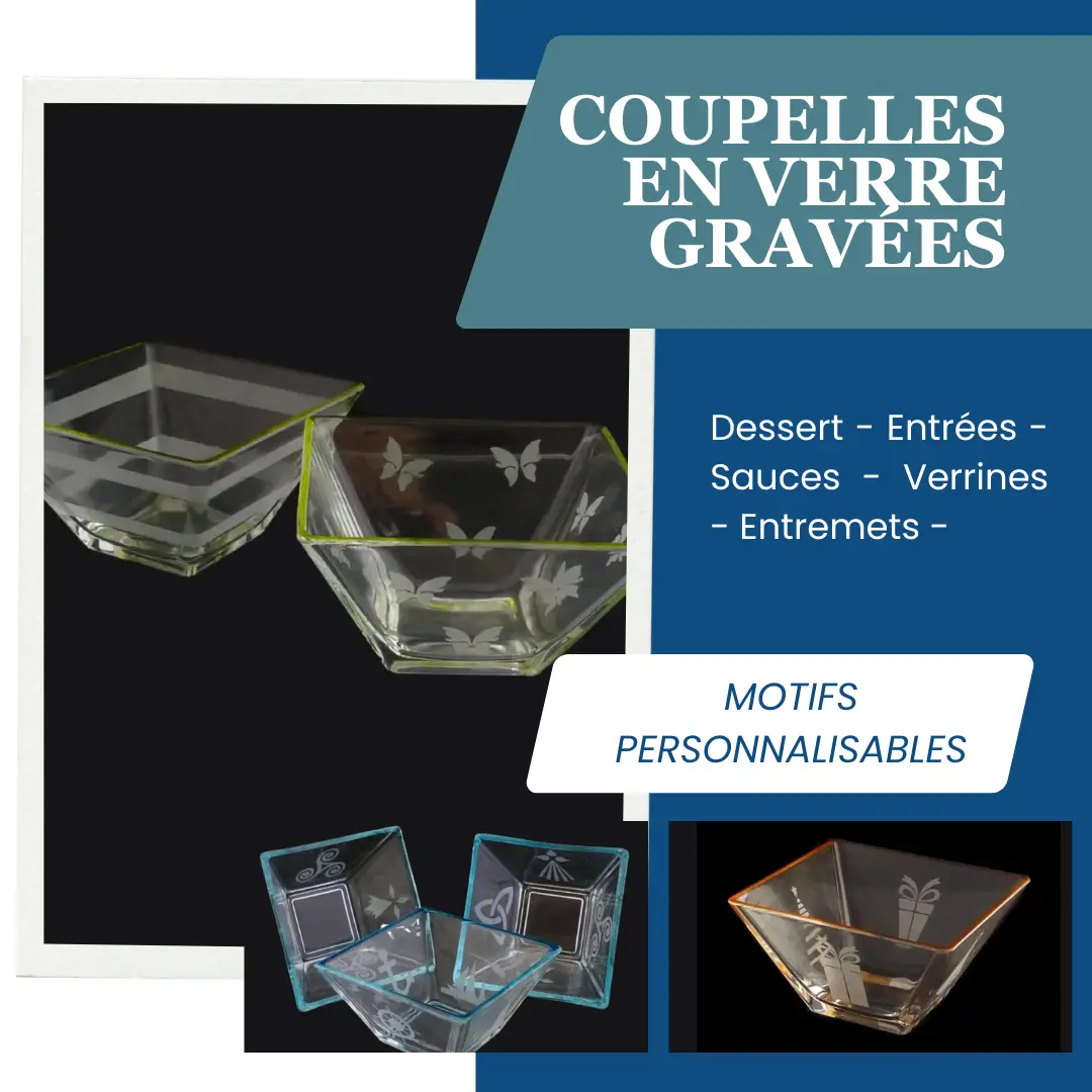 Coupelles en verre avec des papillons ou des bandes gravées par sablage… Lire la suite