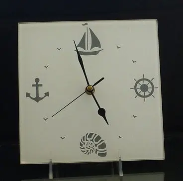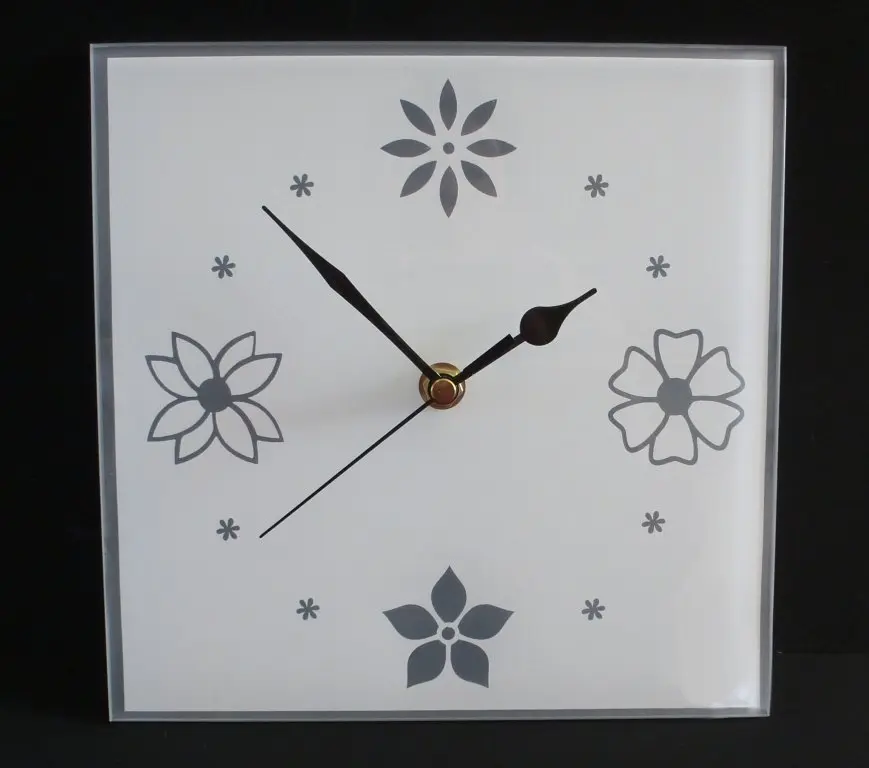 Horloge fleurs en verre blanc gravée par Algan de Lux