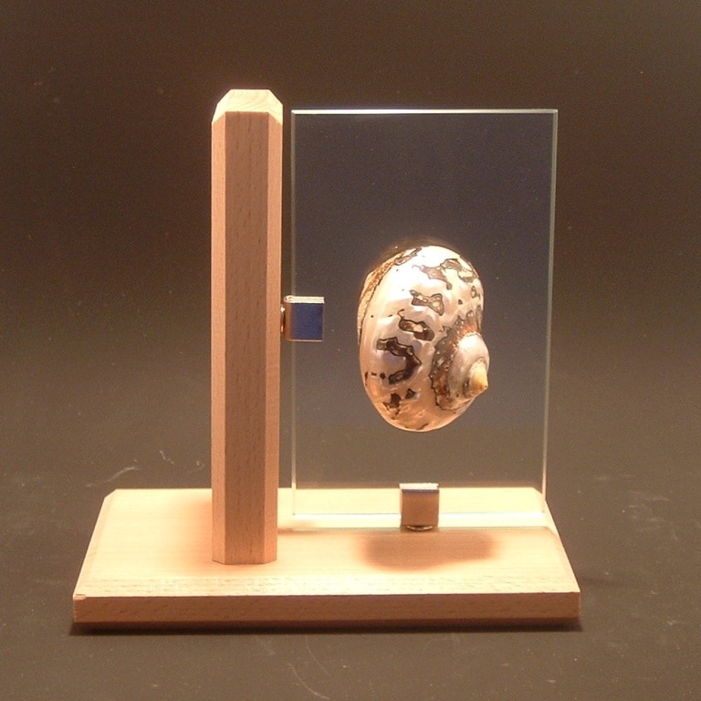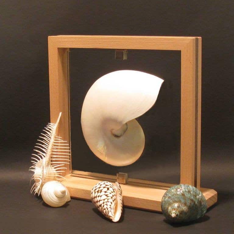 objet décoratif demi nautile nacré et hêtre massif