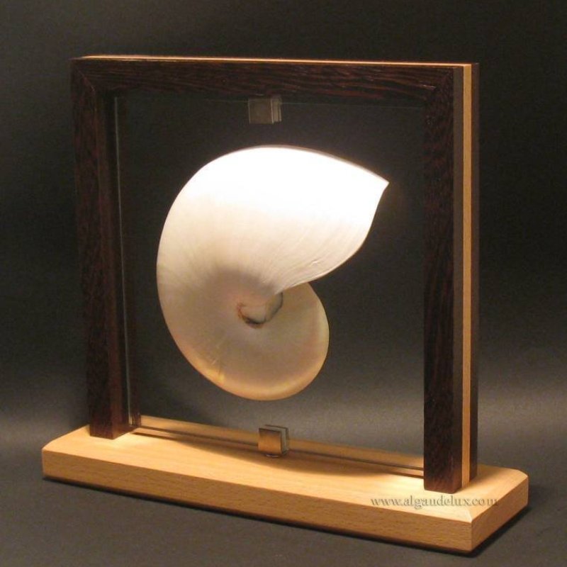 Objet-decoration-Algan-de-Lux-encadre-w-nautile-demi-verre-transparent-20×20