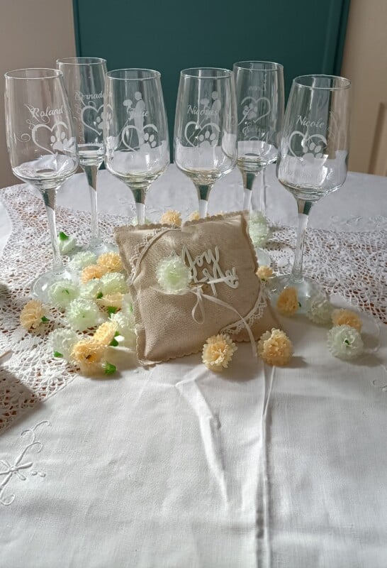 gravure sur verre personnalisée par sablage flûtes mariage breton
