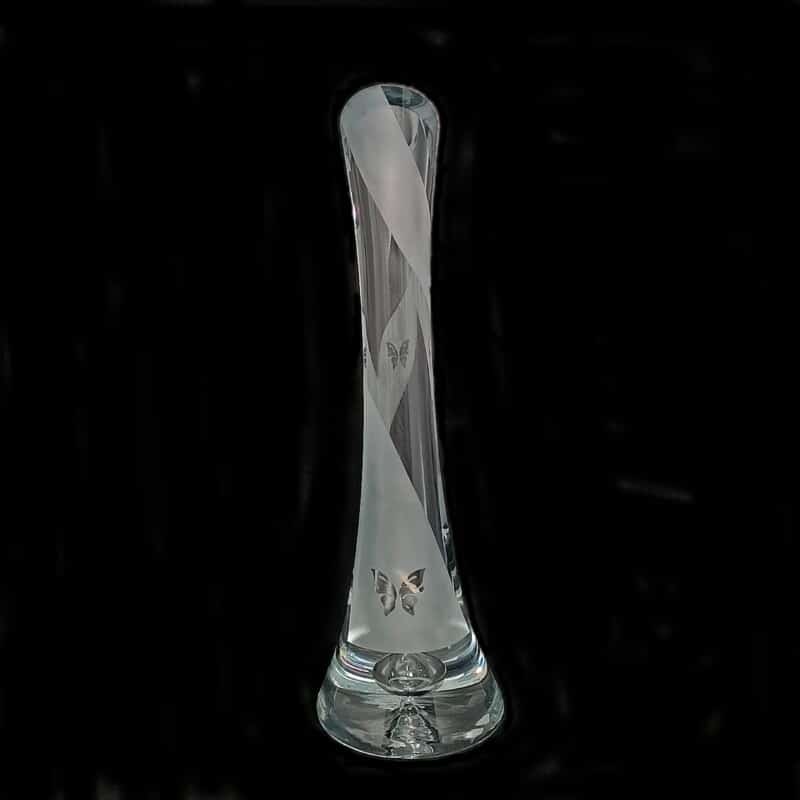 vase soliflore avec deux papillons insérées dans une torsade gravée par sabalge