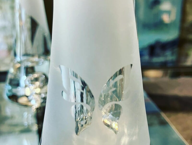 motif papillon vase gravé par sablage par Algan de Lux à Saint-Brieuc
