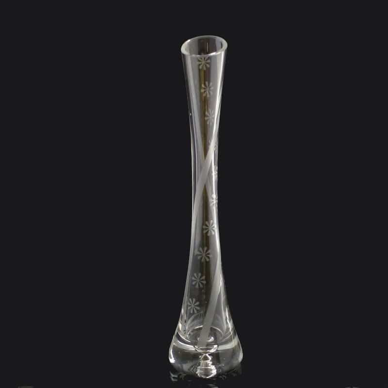 Vase soliflore avec des fleurs et une bande fine gravées par sablage de manière artisanale à Saint-Brieuc.… Lire la suite