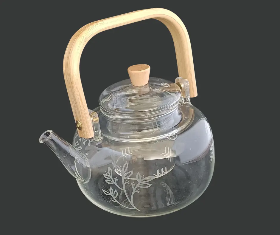 Théière verre et bambou gravée par Algan de Lux à St-Brieuc- Nouveauté été 2025